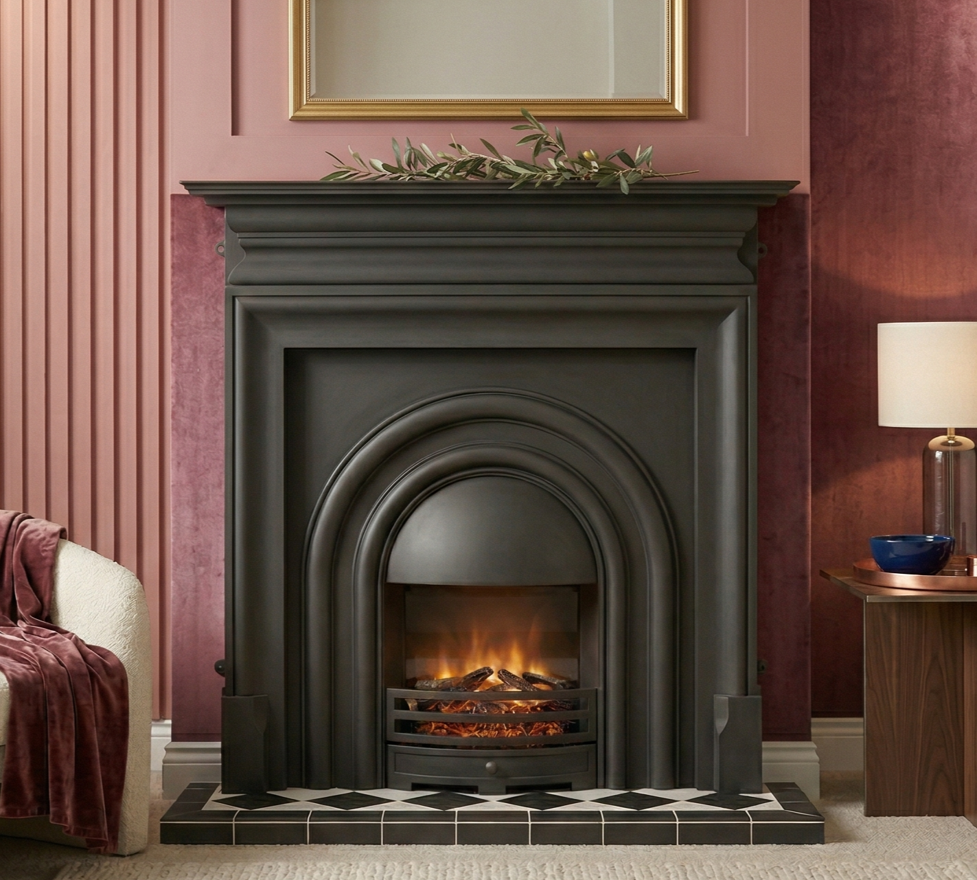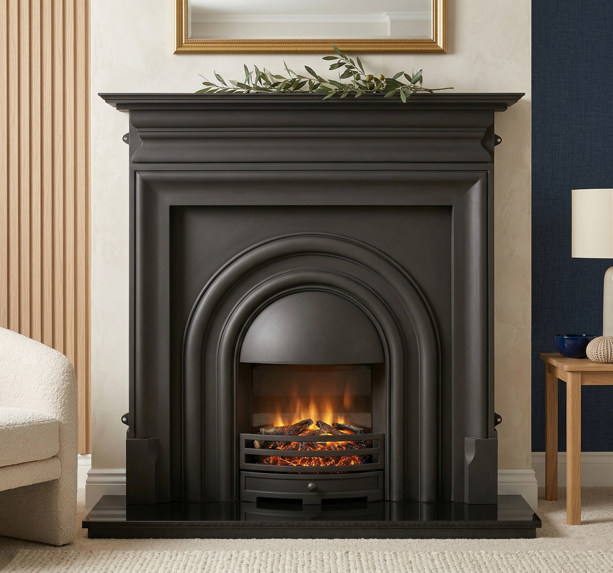 Provident Arched Flat Cast Fireplace Black or Highlighted