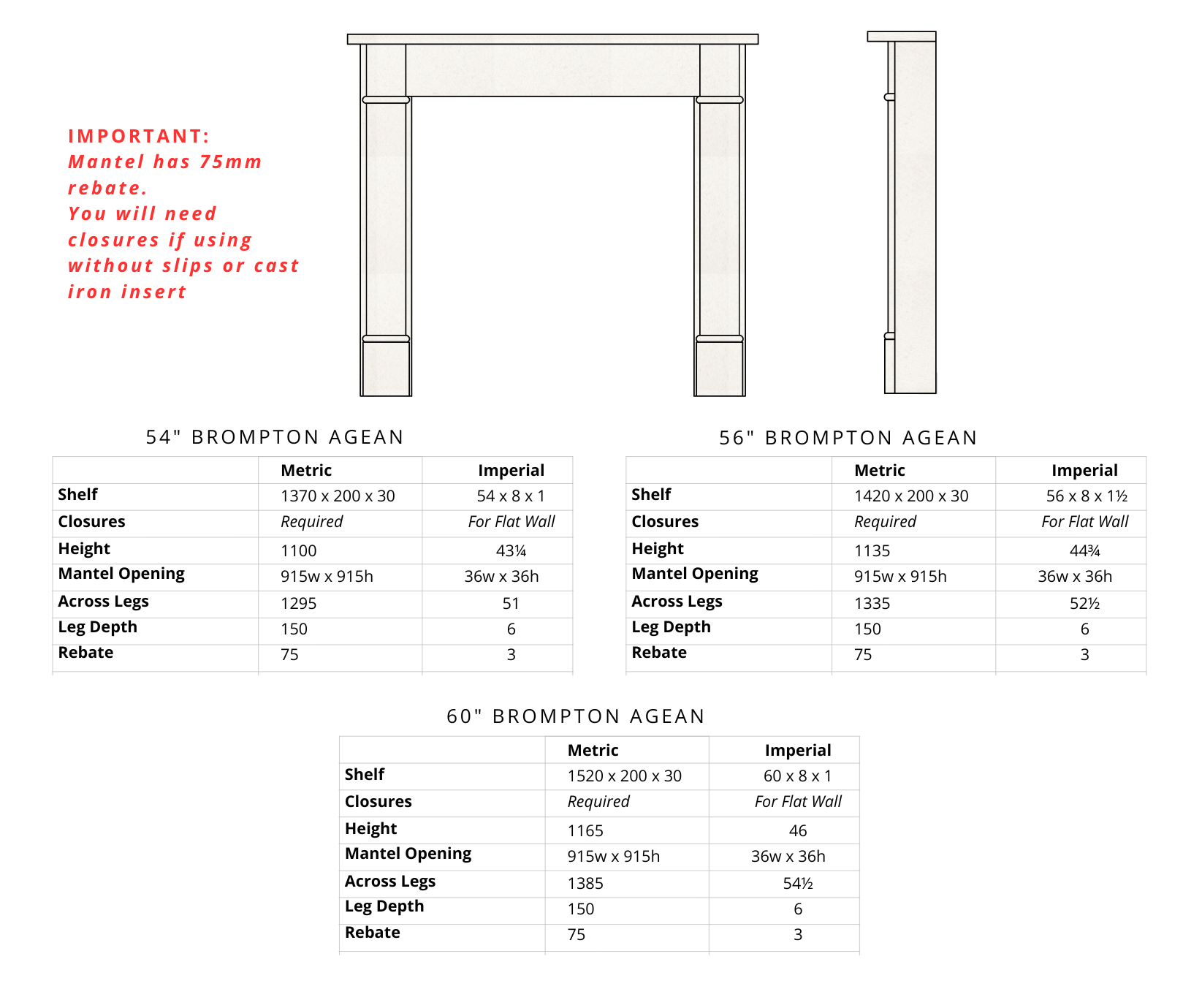 Brompton Limestone Surround 48″ – 51″ – 54″ – 56″ Shelf Width
