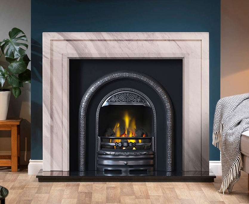 Our marble surrounds come with a standard 75mm rebate, designed for use with arched inserts, cast iron fireplaces, or tiled inserts etc.