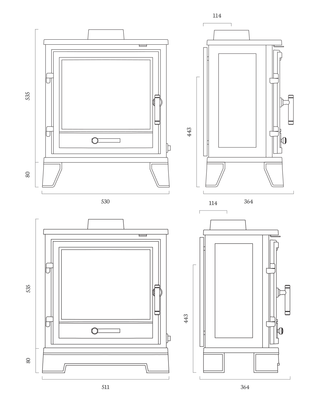443mm Height to centre of rear flue