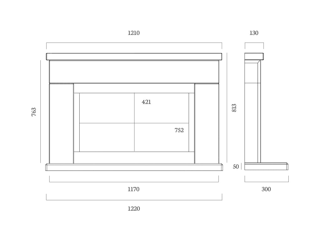 Pictured in Portuguese Limestone with the DL500 Inset Gas Fire with both Brick and Black Glass Interior options. The Catarina 700 suite can be installed with or without a shelf as pictured.