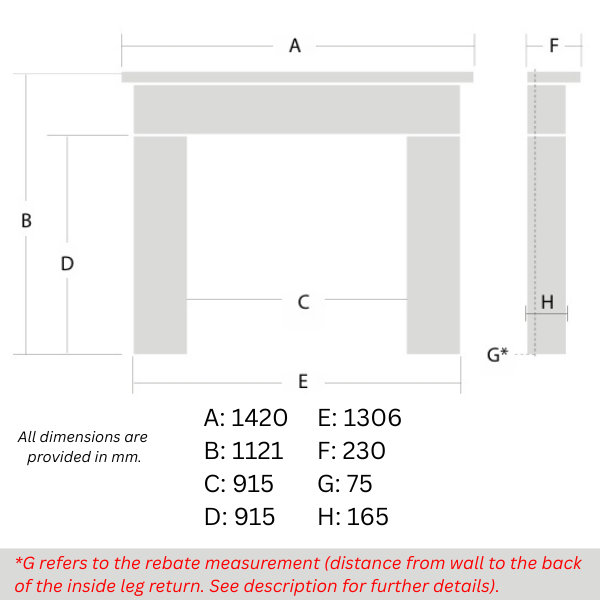 Our marble surrounds come with a standard 75mm rebate, designed for use with arched inserts, cast iron fireplaces, or tiled inserts etc.