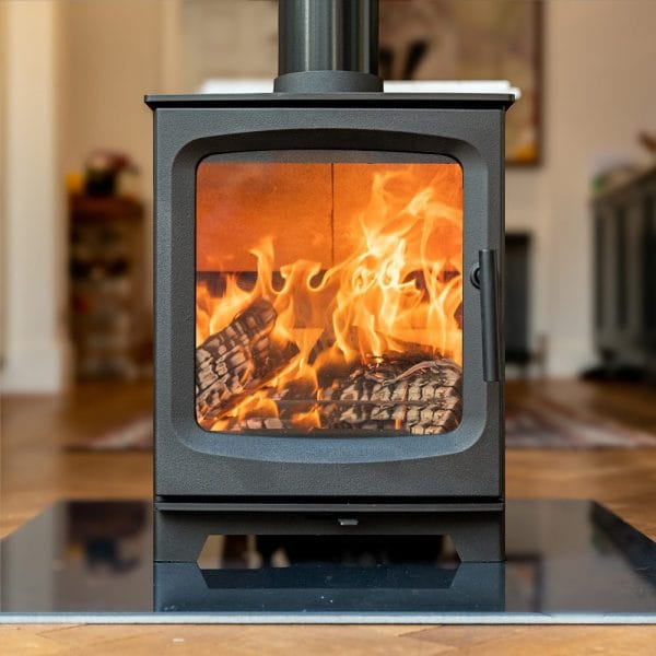This modern looking wide bodied unit will suit a huge range of UK homes and fireplace designs. Its 50mm smooth and thick curved door gives the stove a robust look and feel whilst helping radiate heat for longer.