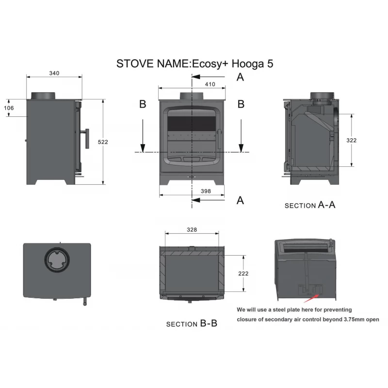 The Ecosy Hooga 5 (pronounced hue-guh) is a wood burning stove with a modern look featuring a huge glass window to enjoy the flames and heat it produces operated by a single control fire could not be simpler.