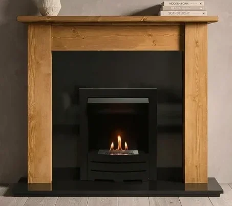 Looking for a traditional fireplace for a flat wall with a real flame, have a look at our brand new package for Summer 2026, featuring our polished granite panel and hearth matched with our Pine Lincoln the fuel option of an inset bioethanol unit or SLE40i Inset Electric fire.