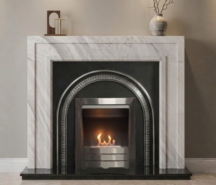 Simple styling and easy to fit add a feature to a flat wall for an authentic cast iron fireplace look with no chimney so flames with no fuss.