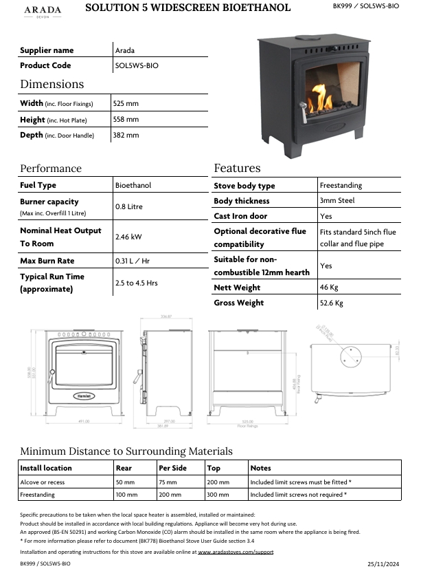 I believe this is the best bio ethanol stove around come and view this at our Heanor showroom you will be very impressed.