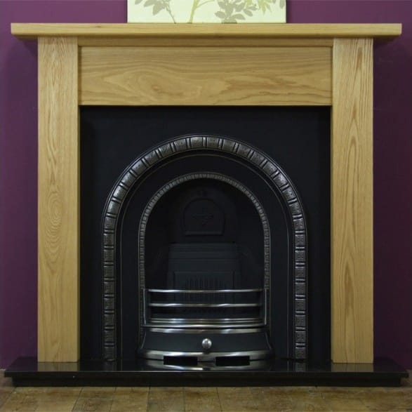 A beautiful modern fireplace package, the Henley insert teams perfectly with the solid and chunky oak Lincoln surround. The Henley, with its decorative striped arch, is one of the prettiest that we sell, while the solid oak Lincoln surround frames it beautifully.