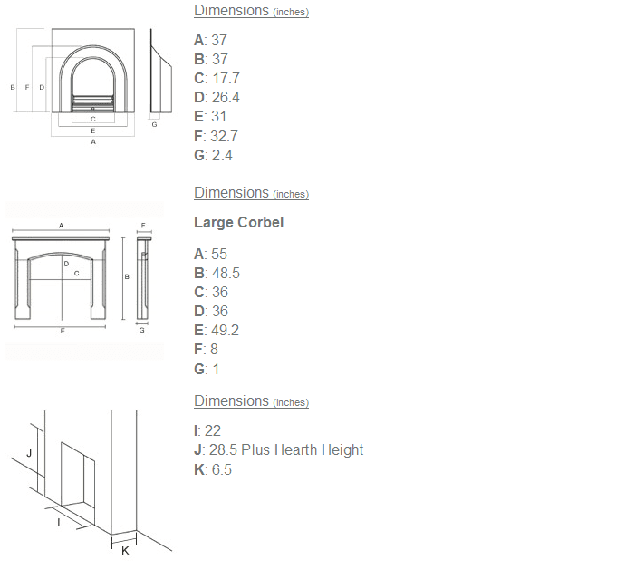 Main Picture Shows the Jubilee Highlighted Fireplace with the 55″ Unwaxed Large Corbel Surround and Granite Hearth