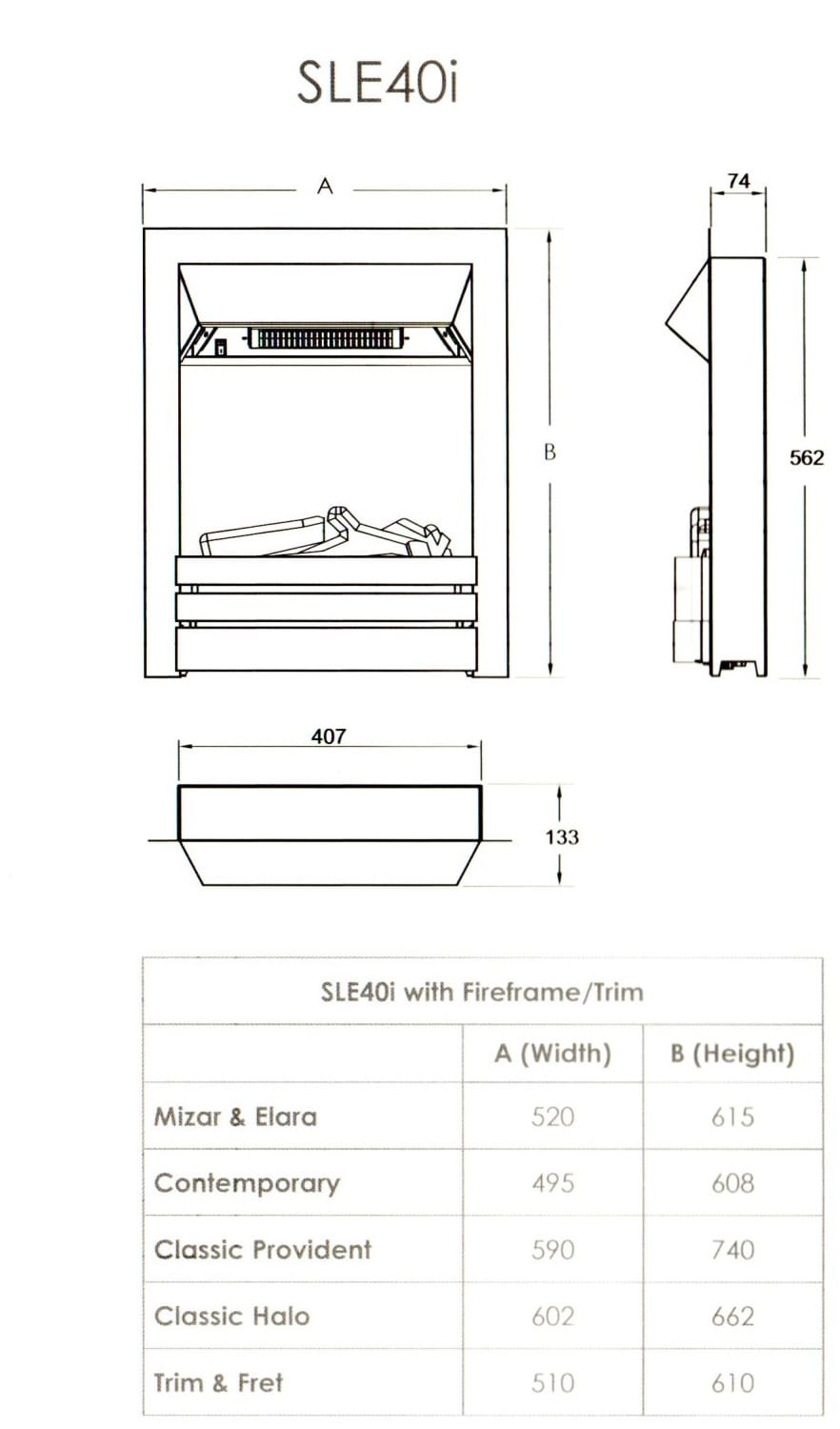 The SLE40i features our electronic 3D effect technology for an ultra-realistic, relaxing flame pattern and three dimensional, glowing log or coal fuel bed – cleverly tapered to give the illusion of a deeper fire. Available with a huge range of fronts and fascias in a variety of styles and finishes. set the desired temperature and adjust the brightness of the flames and fuel bed using the convenient infrared remote control.